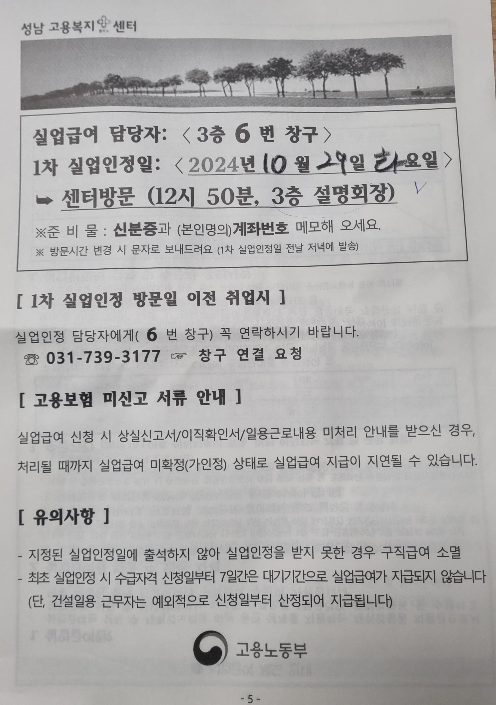 2024.11.05 - [재테크] - 2024 실업급여 1차 실업 인정일 센터 방문