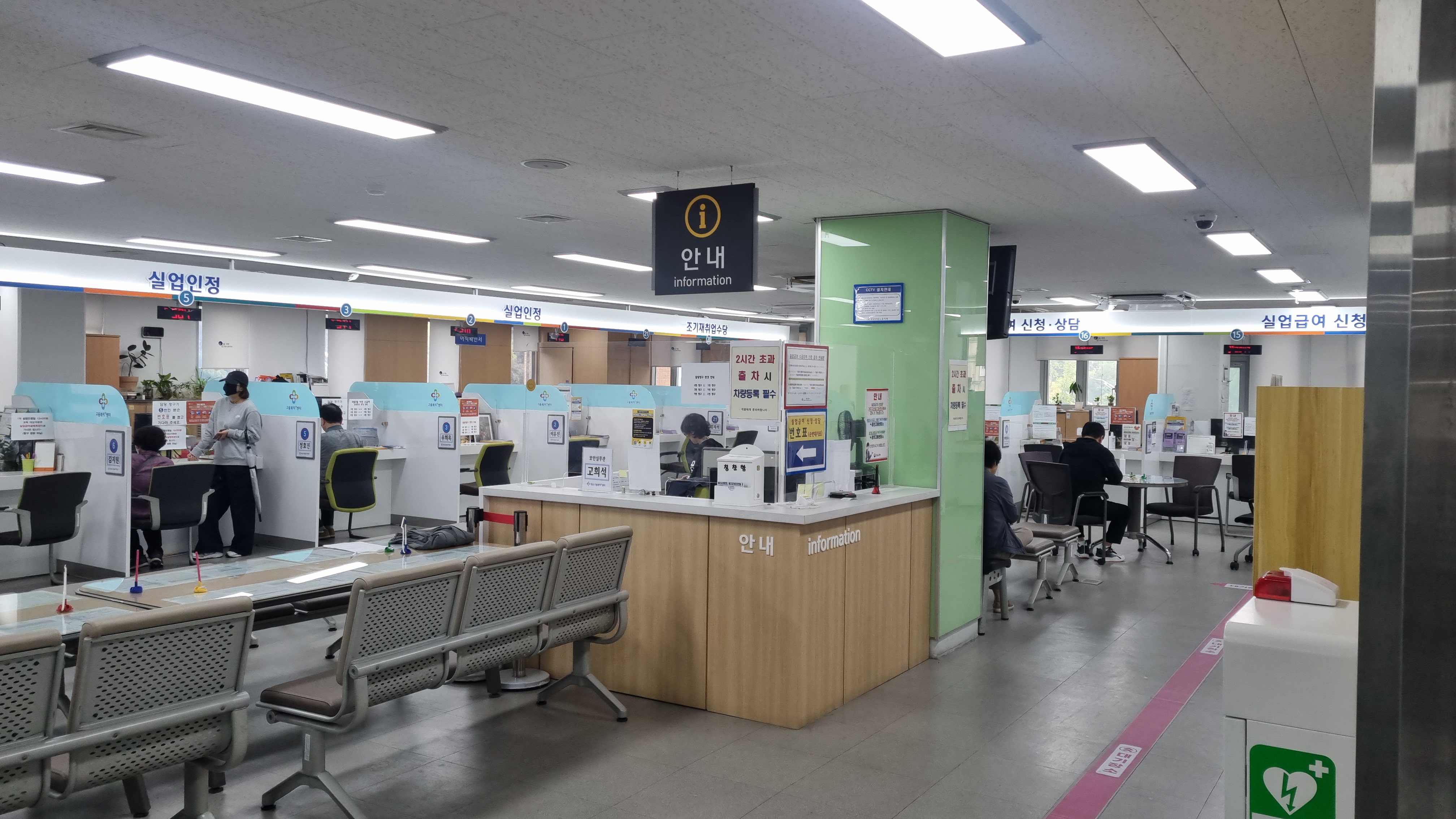자리에 도착하고 나서 신분증을 내면 이것저것 직원이 물어본다. 왜 실업하였는지, 개인사업자가 있는지.