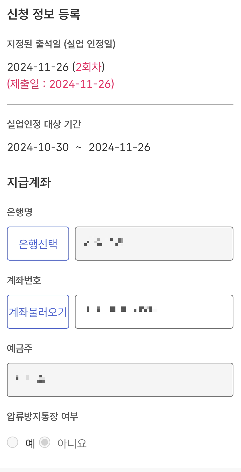 1차 실업급여를 받았다면 자동으로 지급계좌가 연결된다.
