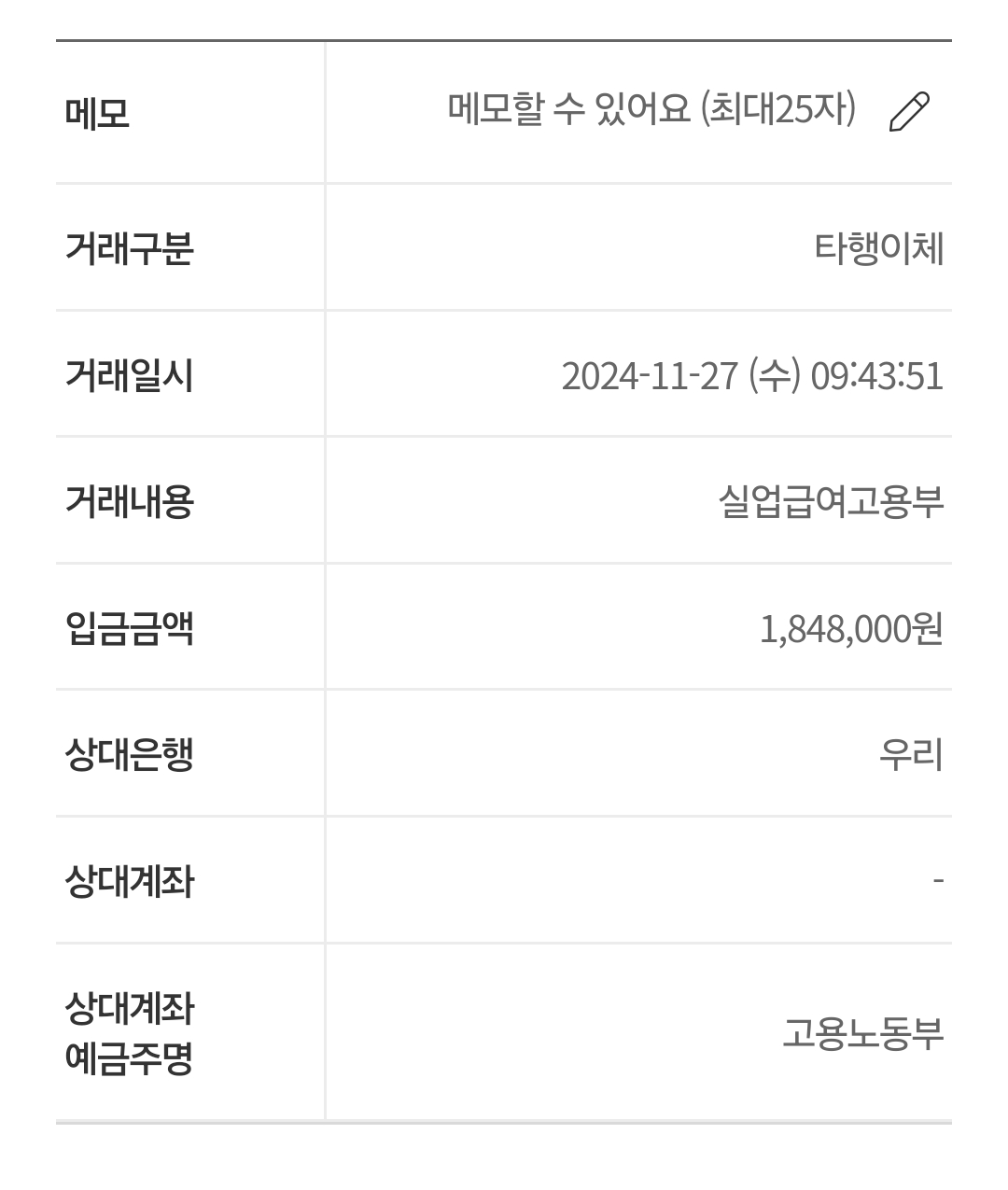 나는 다음날 바로 실업급여가 입금이 되었다!