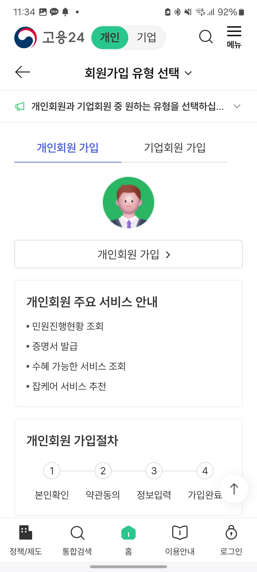 4. 고용24 앱으로 회원 가입을 한다